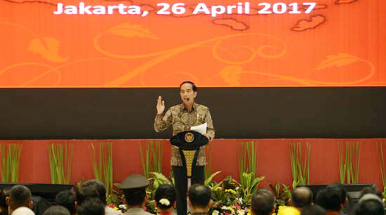 JAKARTA – majalahglobal.com : Presiden Joko Widodo membuka Musyawarah Perencanaan Pembangunan Nasional (Musrenbangnas) 2017, yang dihadiri oleh pimpinan lembaga tinggi negara, para menteri dan kepala lembaga pemerintah non kementerian, para gubernur serta bupati/wali kota, Rabu (26/4).
