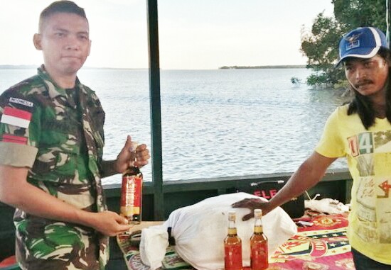 Terdapat sekitar 55 botol miras asal Malaysia, yang diamankan anggota TNI di sei Kaca, atau di simpang tiga Kalabakan, Malaysia, yang diperoleh dari salah satu nelayan asal kelurahan Nunukan Barat Tanjung, bernama Malik (43).