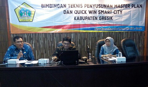GRESIK – majalahglobal.com : Guna mencapai target Kabupaten Kota Smart City di tahun 2021, Dinas Komunikasi dan Informatika akan membangun Command Centre dalam waktu dekat ini. Hal ini disampaikan oleh Kepala Dinas Komunikasi dan Informatika, Budi Raharjo didampingi Kepala Bagian humas dan Protokol Pemkab Gresik Suyono saat bimbingan teknis penyusunan Master Plan dan Quick Win Smart City Kabupaten Gresik di Ruang Retno Suwari Kantor Bupati Gresik, Selasa (1/8).