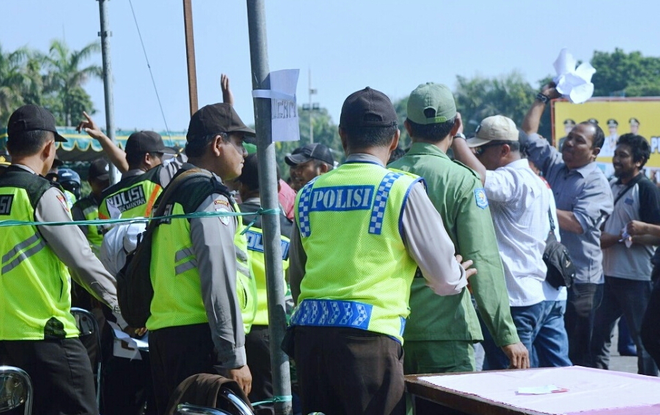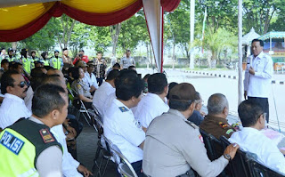 Apel kesiapan guna mengamankan pilkades serentak berlangsung di halaman kantor Bupati Gresik, Rabu (25/10/2017). Pemilihan Kepala Desa (Pilkades) secara serentak di 19 desa yang meliputi 18 kecamatan se-kabupaten Gresik akan terlaksana pada tanggal 29 Oktober mendatang. Untuk itu, Polres Gresik menggelar apel persiapan pengamanan pilkades guna meminimalisir potensi terjadinya konflik pada pesta demokrasi di tingkat desa tersebut.
