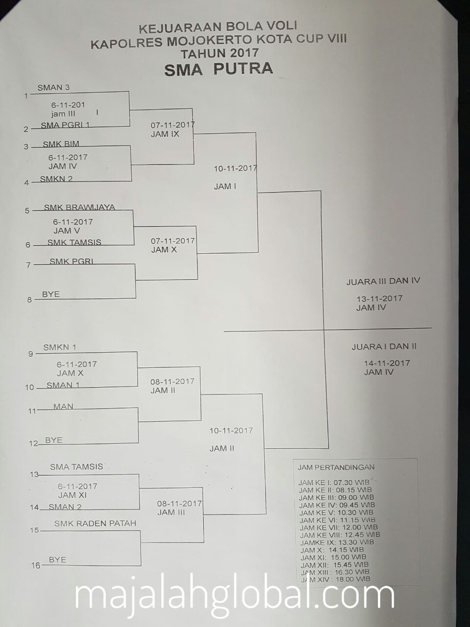 Dalam rangka memperingati hari pahlawan, Kapolres Mojokerto bekerja sama dengan Pemerintah Kota Mojokerto, PBVSI Kota Mojokerto dan KONI Kota Mojokerto resmi menggelar Lomba Kejuaraan Bola Voli Kapolres Mojokerto Kota Cup Ke VIII antar SMP & SMA Se-Kota Mojokerto Tahun 2017 yang bertempatkan di Gor dan Seni Mojopahit Kota Mojokerto mulai tanggal 6-14 November 2017.
