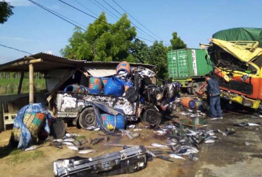 Kemudian, dari depan truk trailer nopol L 9945 UF. Kemudian truk tronton langsung menabrak trailer pada bagian belakangnya hingga keluar jalan. Sedangkan di belakang trailer itu ada mobil pikap pengangkut ikan dengan nopol S 9162 JE .