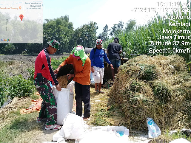 MOJOKERTO – majalahglobal.com : Babinsa Koramil 0815/06 Kemlagi Kodim 0815 Mojokerto, Serma Edi Setyawan melaksanakan pendampingan panen padi di Dusun Segawe, Desa Mojowono, Kecamatan Kemlagi, Kabupaten Mojokerto, Jawa Timur, Sabtu (16/03/2019).