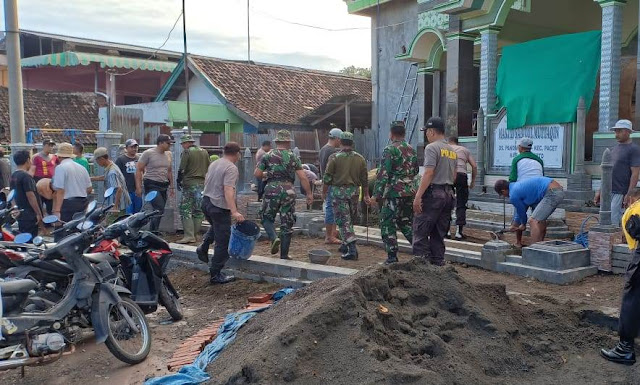 Mojokerto – majalahglobal.com : Sedikitnya 150 orang gabungan personel TNI – Polri dari Kodim 0815 dan Polres Mojokerto serta elemen masyarakat melaksanakan karya bakti di Masjid Sabilul Muttaqin Desa Pandanarum, Kecamatan Pacet, Kabupaten Mojokerto, Jawa Timur, Rabu (20/03/2019).