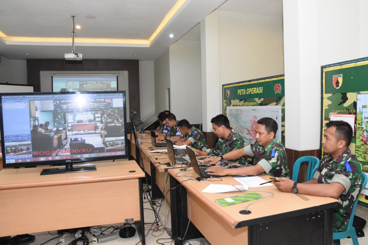 “Untuk Komandonya, ditempatkan di ruang data Makorem. Sedangkan untuk para peserta, melaksanakan kegiatannya di Kodim masing-masing,” ujarnya. “Untuk komunikasinya, menggunakan sarana video conference,” imbuhnya. Kamis, 9 Mei 2019.