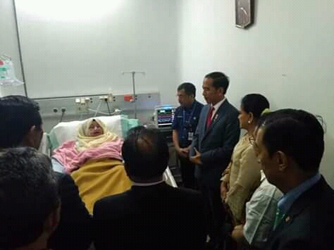 Presiden dan Ibu Negara menjenguk Wali Kota Risma ditemani oleh Luhut Binsar Panjaitan, Menteri Sekretaris Negara, Pratikno, Wakil Gubernur Jawa Timur, Emil Elistianto Dardak bersama istrinya Arumi Bachin.