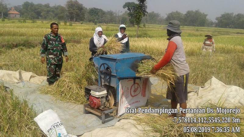 Sebelumnya, Senin (05/08) Serma Lies Muhammad Rofiq juga melaksanakan pendampingan panen padi di lahan seluas 5.000 meter2, milik Rozak, anggota Poktan Sri Rejeki, Dusun Beringin, Desa Mojorejo. Di lokasi ini, panen padi dilakukan secara manual dan diprediksikan menghasilkan gabah seberat 4 ton. Sementara untuk harga GKP dan GKG tidak jauh berbeda dengan yang berlaku di Dusun Sumbertani.