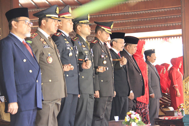 Upacara tersebut juga diikuti personel TNI, Polri serta ASN Pemkab serta dihadiri Sekdakab, para Asisten, Ka OPD, Forpimka, PKK dan segenap undangan.