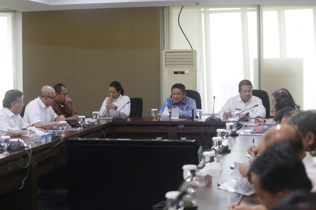 Dalam rapat tersebut Gubernur Sumsel tidak datang sendiri tapi tampak hadir juga Gubernur Lampung Arnal Djunadi. Kemudian Kepala PU Bina Marga Sumsel Dharma Budi, Kepala Dishub Sumsel Nelson, dan TGUPP Bidang Infrastruktur Darna Dahlan. (ollan hangga)