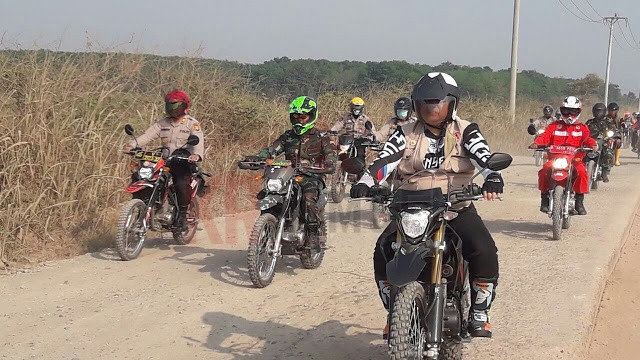 Dengan menggunakan motor trail, Bupati OKI yang diwakili Sekretaris Daerah, Dandim 0402, Kapolres OKI, BPBD, Manggala Agni mengitari kawasan gambut sepucuk, Kayuagung, Senin, (16/9).