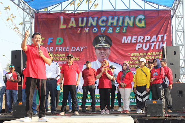 Mojokerto – Kecamatan Jetis kembali berinovasi lewat dua program anyar. Yakni car free day (CFD) tiap Minggu pagi, serta inovasi bernama Merpati Putih (Meraih harapan tak pernah mati, dan jangan pernah putus cinta kasih). Launching kedua program tersebut, dilakukan pada Minggu (6/10) pagi di lapangan Desa Jetis, dengan dihadiri langsung Wakil Bupati Mojokerto Pungkasiadi didampingi Wakil Ketua TP PKK Yayuk Pungkasiadi. Selain launching inovasi, digelar juga lomba mewarnai yang diikuti 2.000 orang siswa TK dan PAUD se Kecamatan Jetis.