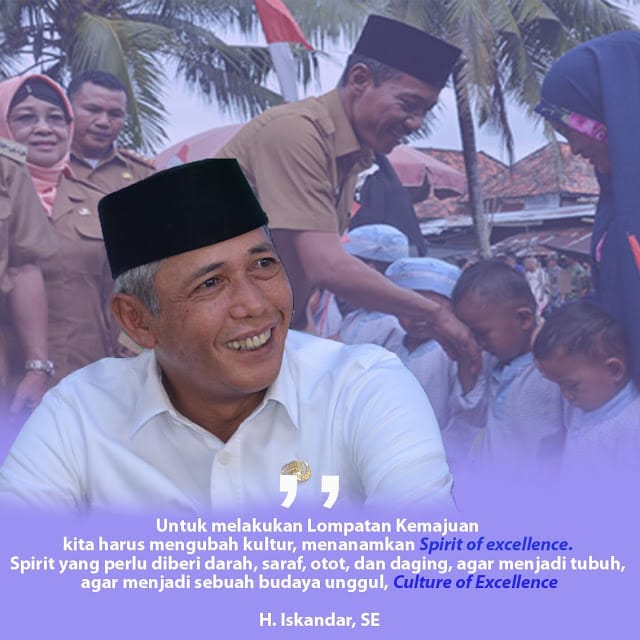 Untuk melakukan lompatan itu, tukas Iskandar harus ditumbukan kultur baru, yaitu culture of excellence.Kultur unggul di semua bidang kehidupan.Basis keunggulan suatu daerah,bahkan bangsa, nyata-nyata dan tak lain,ialah manusia-manusianya,baik spiritualitas, intelektualitas, dan etos kerjanya.