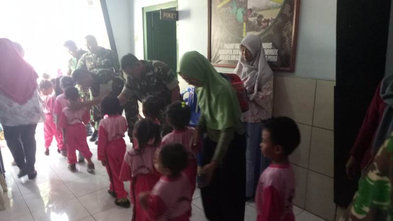 Kedatangan sejumlah 47 Anak-Anak TK tersebut, diterima Bati Tuud Pelda Rusmanto, Para Bati Staf dan sejumlah Babinsa. Turut serta mendampingi anak-anak TK, antara lain Kepala Sekolah, Tatik, S.Pd beserta Guru Pendamping dan wali murid.