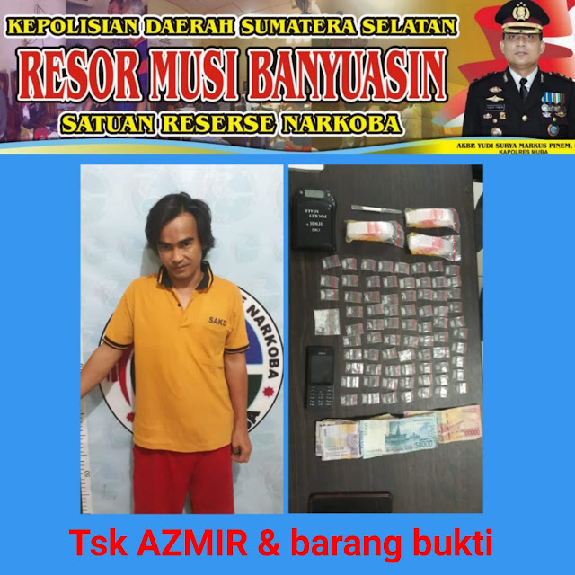 Gabungan satuan Reserse Narkoba dan Buser Sat Reskrim Polres Muba beserta Unit Reskrim Polsek Babat Toman berhasil meringkus satu pemuja sabu dan bandar narkoba didusun 1 desa kasmaran kec.babat toman, Kamis dini hari (31/10/19) pukul 01.05 Wib.