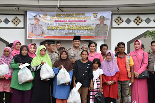 Tak hanya itu, kegiatan jumat barokah ini, tidak hanya dilakukan oleh personil polri tapi juga mengikut sertakan ibu Bayangkari dalam setiap kegiatan dalam membagikam sembako kepada masyarakat dan para tukang ojek dan kaum duafa.