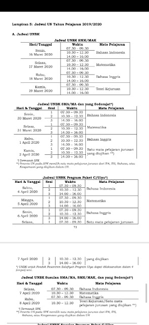 Kepala Dinas Pendidikan Kabupaten Tapin, Hj.Ahlul Janah mengatakan, “Kami infokan pelaksanaan UNBK untuk sekolah SMP, SMA/SMK tidak ada perubahan jadwal. Tetap dilaksanakan pada hari Senin, 16 Maret 2020,”katanya.