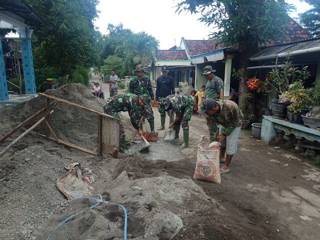 Pantauan di lapangan, tampak gabungan personel Satgas TMMD bersama masyarakat setempat bergotong royong mengerjakan renovasi musholla sesuai dengan sektor pembagian tugas masing-masing. (Jayak)