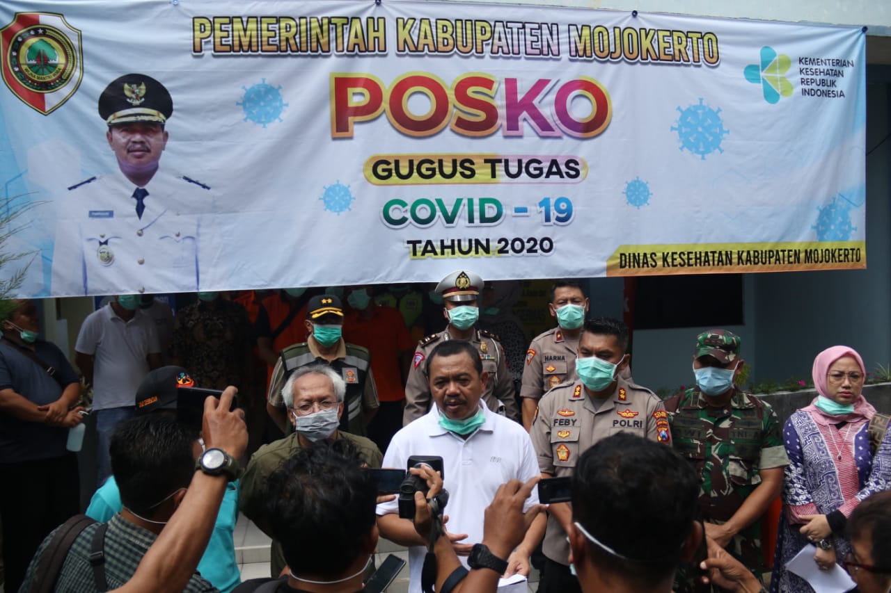 Kapolres Mojokerto AKBP Feby DP Hutagalung melaksnakan pemantauanp posko gugus tugas di Dinas Kesehatan Kab. Mojokerto alamat Jl R.A Basuni No 4 Kec. Sooko Kab. Mojokerto bersama Bupati Pungkasiadi dan forkopimda lainya.