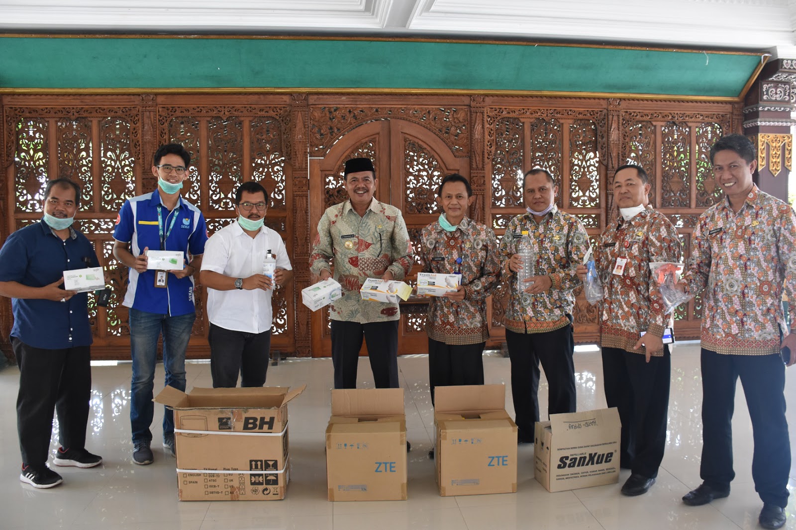 Hal ini dijelaskan Bupati Mojokerto Pungkasiadi, saat menerima bantuan coorporate social responsibility (CSR) pencegahan Covid-19 dari PT. Telkom Indonesia, Kamis (26/3) siang di Pendapa Graha Majatama.