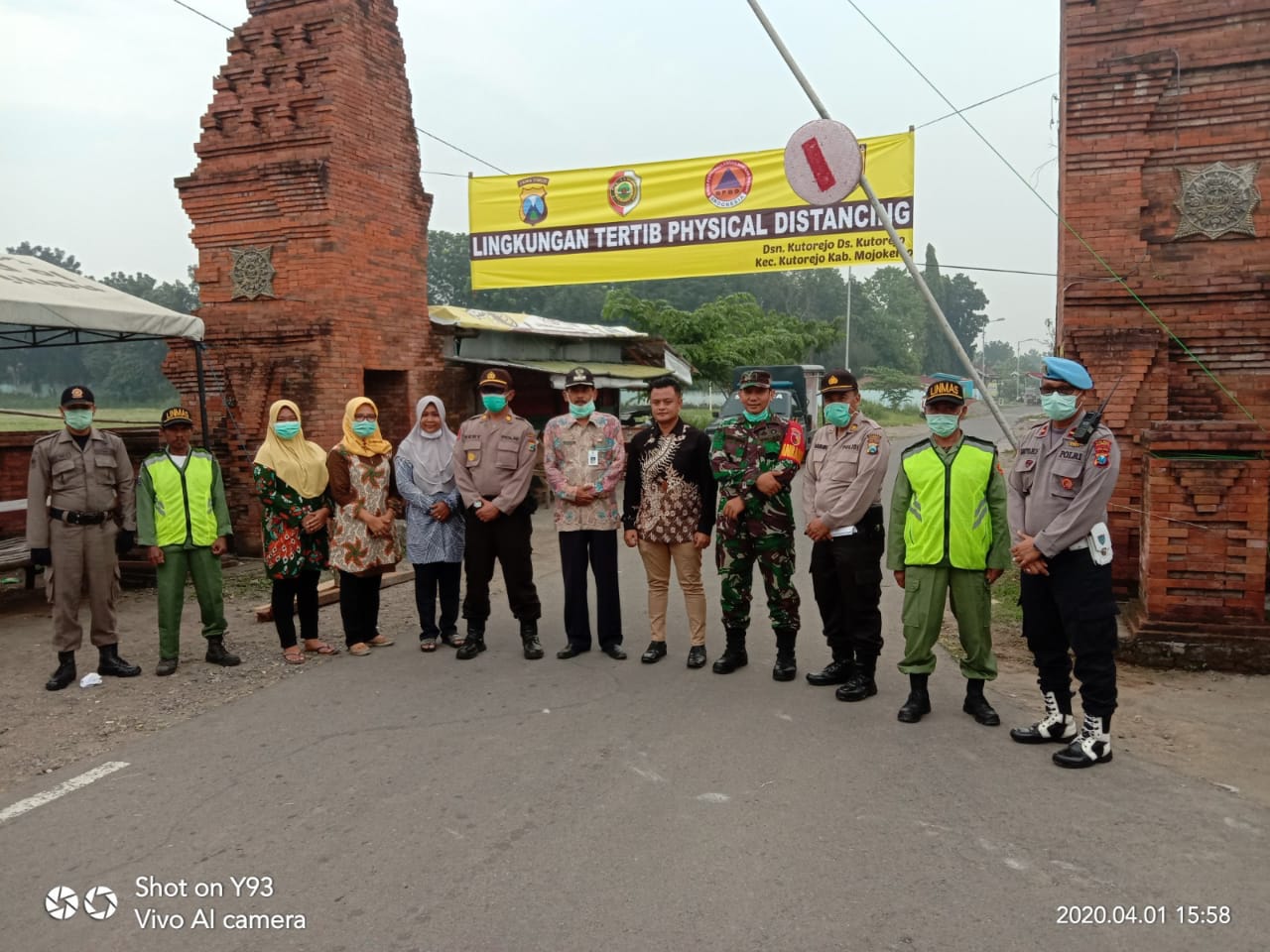 Mojokerto, – Majalahglobal.com : Danramil 0815/13 Kutorejo Kodim 0815/Mojokerto Kapten Inf Benny Irawan, A.Md., bersama Forpimka Kutorejo memantau langsung kawasan tertib Physical Distancing di Dusun Kutorejo Desa Kutorejo Kecamatan Kutorejo Kabupaten Mojokerto, Jawa Timur, Rabu (01/04/2020).