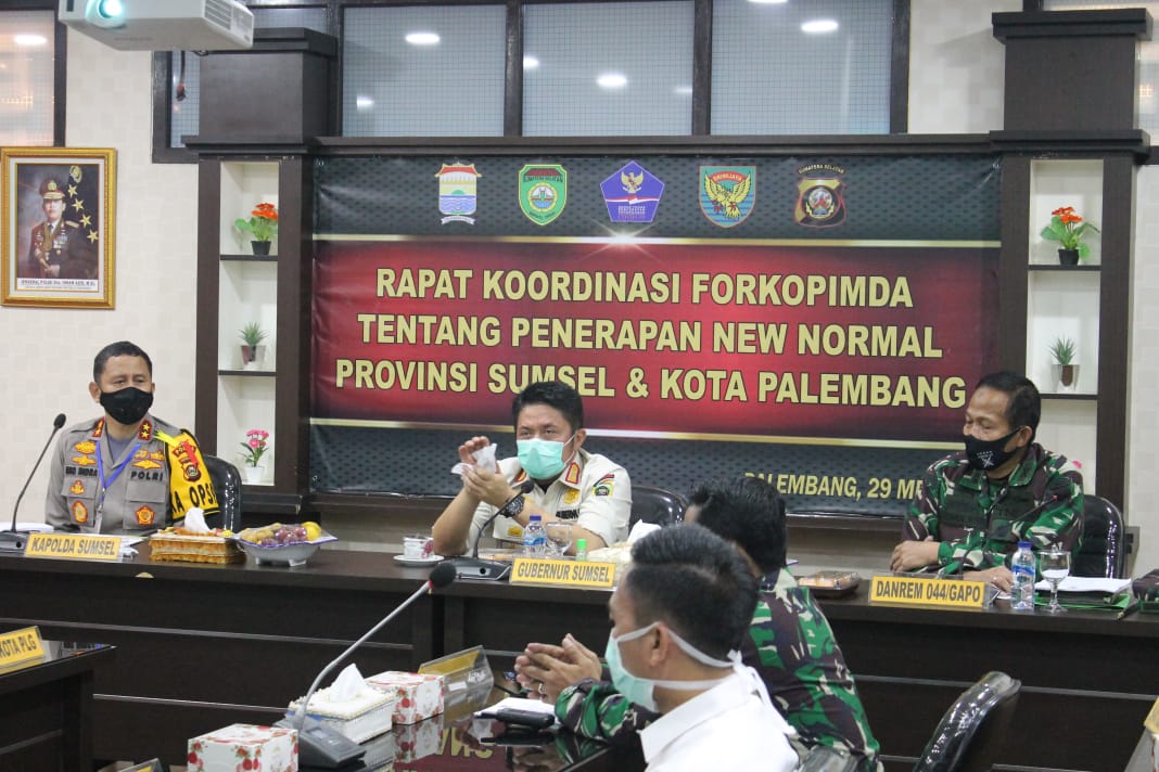 Palembang – Dari informasi yang dihimpun www.majalahglobal.com, pada Kegiatan Rapat Koordinasi new normal ini dihadiri oleh Gubernur Sumsel H. Herman Deru, Kapolda Sumsel Irjen Pol Prof. Dr. Eko Indra Heri S.,MM, Pangdam II Sriwijaya yang diwakili oleh Danrem 044 Gapo Kolonel Arm. Jauhari Agus Suraji, SIP, S.Sos, Walikota Palembang H. Harnojoyo, Kasat Pol PP, Kadinkes serta Unsur-Unsur Forkopimda lainnya, Jumat (29/5/2020) di Mapolrestabes Palembang.