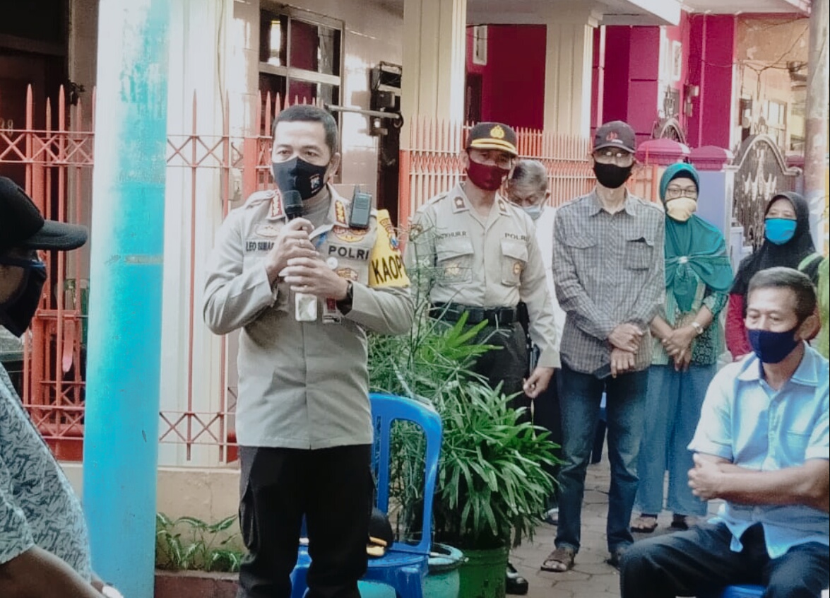 Kapolresta Malang Kota Kombes Pol Leonardus Simarmata bersama, Kombes Pol Drs Rochiyanto MH beserta jajaran PJU Polresta Malang Kota, menyalurkan bantuan paket sembako pada warga sekitar.