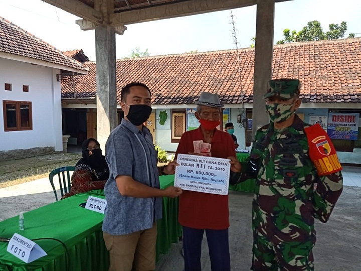 Terpisah Danramil 0815/10 Bangsal Kapten Inf Mujiono, mengungkapkan, pembagian BLT, BLT Dana Desa maupun bantuan lainnya merupakan wujud perhatian sekaligus kepedulian pemerintah terhadap masyarakat, guna meringankan beban ekonomi warga kurang mampu yang terdampak Covid-19.