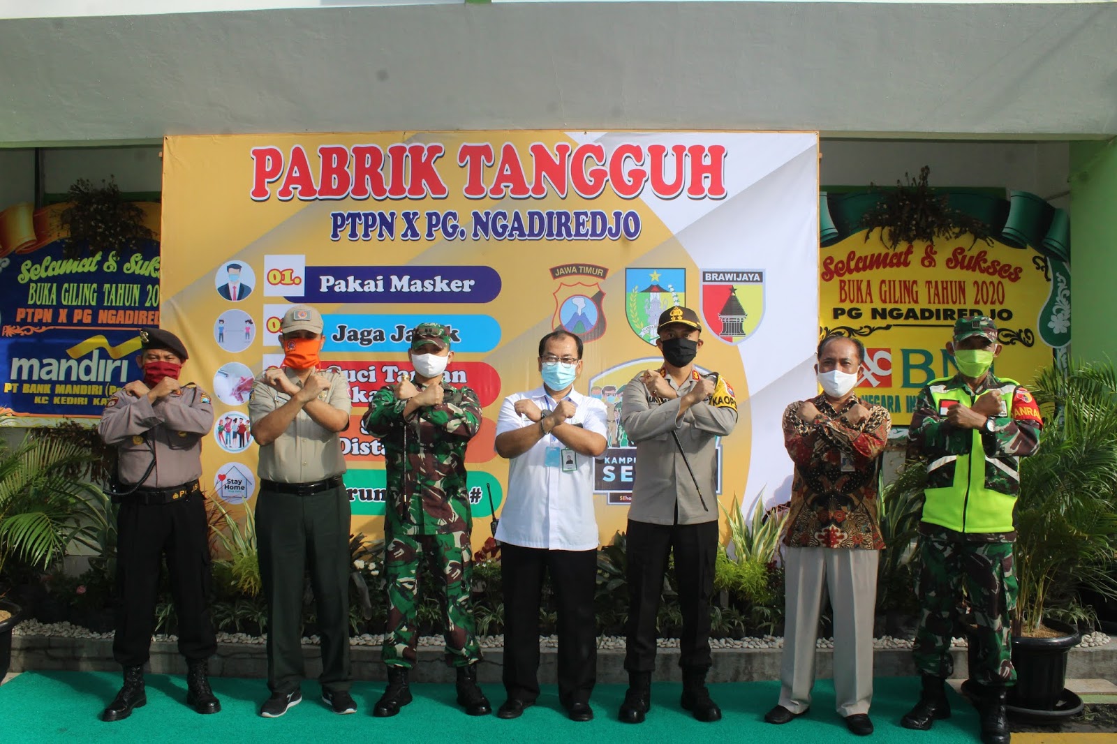 Sementara itu Kapolres Kediri AKBP Lukman Cahyono SIK juga mengatakan, “Berdasarkan survei untuk PTPN X PG Ngadirejo telah mampu dalam pencegahan dan penerapan SOP Covid-19, maka dari itu Pemerintah Daerah, Kepolisian dan TNI menunjuk PTPN X PG Ngadirejo sebagai Pabrik Tangguh di wilayah Kabupaten Kediri, karena telah mampu dalam penerapan sistem kerjanya sesuai protokol Covid-19,” ungkap Kapolres Kediri.
