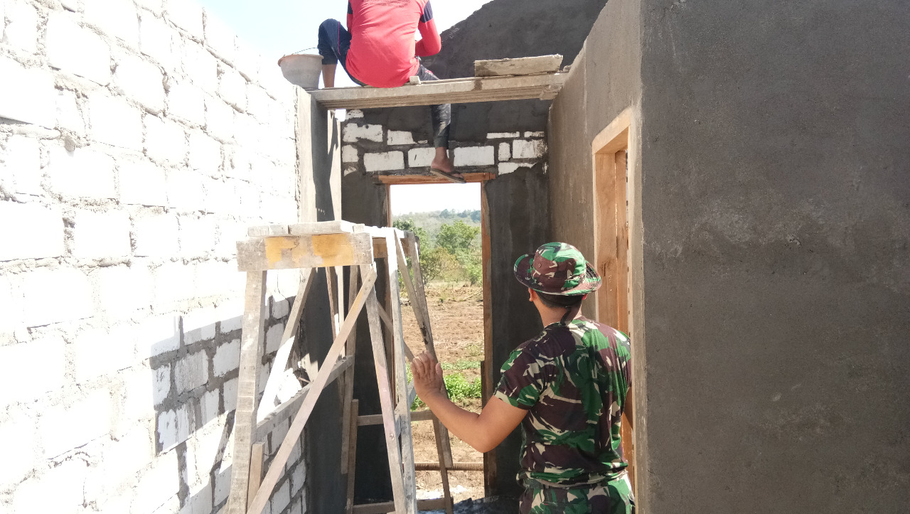 Lamongan-Dalam upaya mengejar target waktu pengerjaan Sasaran utama TNI Manunggal Membangun Desa (TMMD) ke-109 TA. 2020 Kodim 0812/lamongan yang terpusat di Desa tebluru, Kecamatan Solokuro Kabupaten Lamongan. Satgas TMMD 109 dibantu masyarakat Desa tebluru bersama-sama mengerjakan penyelesaian dinding rumah khoirotun niswa