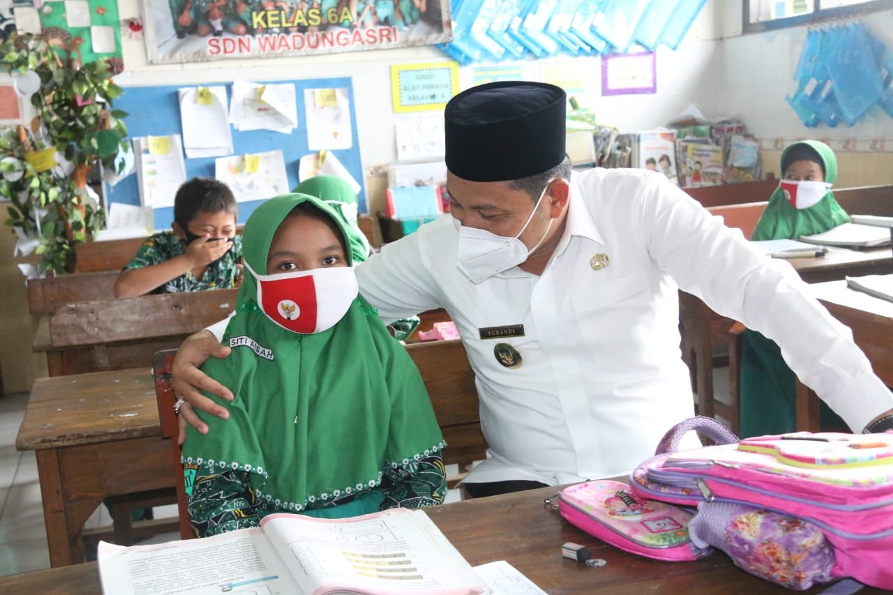 Pada kesempatan ini Wabup Subandi juga berdialog secara langsung bersama anak-anak didik serta menitipkan pesan untuk selalu giat belajar agar bisa meraih cita-cita serta jangan lupa untuk selalu menjaga prokes yang berawal dari diri masing-masing siswa.