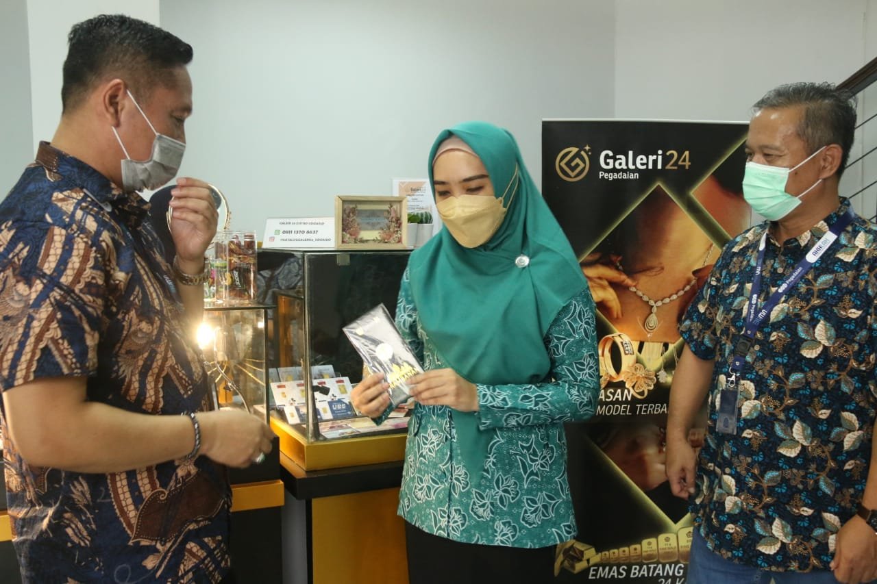 Ning Sasha beserta rombongan melihat langsung berbagai macam koleksi emas Galeri 24 yang sudah dalam bentuk perhiasan maupun dalam bentuk batangan serta logam  yang dipamerkan dan diperjual belikan kepada masyarakat umum