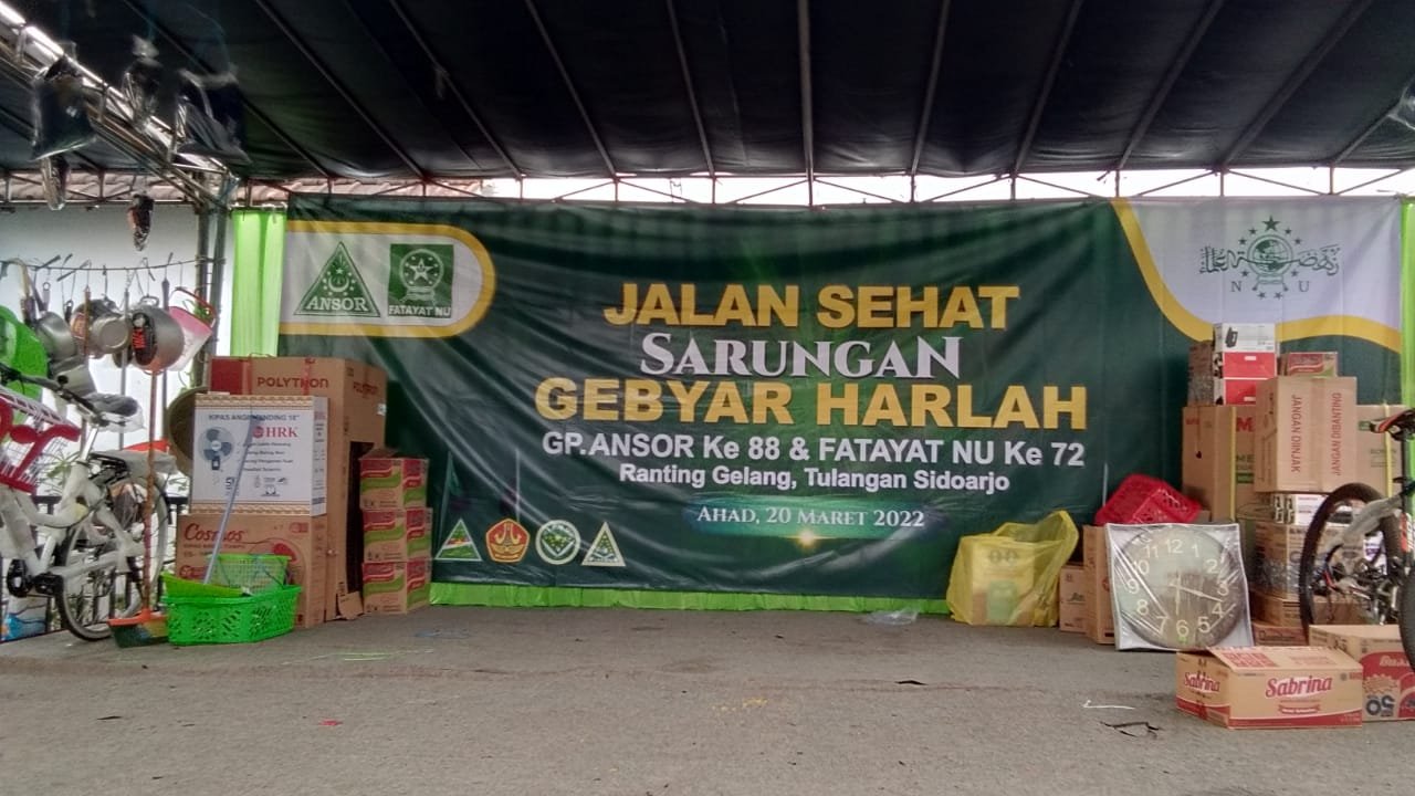 Peringatan Hari Lahir (Harlah) Gerakan Pemuda (GP) Ansor yang ke 88 dan Fatayat NU yang ke 72 digelar secara bersamaan dibalai desa Gelang dengan diadakan Jalan Sehat Sarungan (nuansa santri) Dari Start Balai Desa Gelang dan Finishnya Di Balai Desa lagi,Minggu, (20/3/2022).