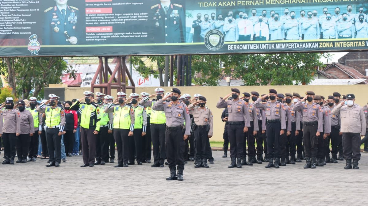 SIDOARJO – Kapolresta Sidoarjo Kombes Pol. Kusumo Wahyu Bintoro, Minggu (1/5/2022), memimpin Apel Gelar Pasukan Pengamanan Malam Hari Raya Idul Fitri 2022 di Mapolresta Sidoarjo.