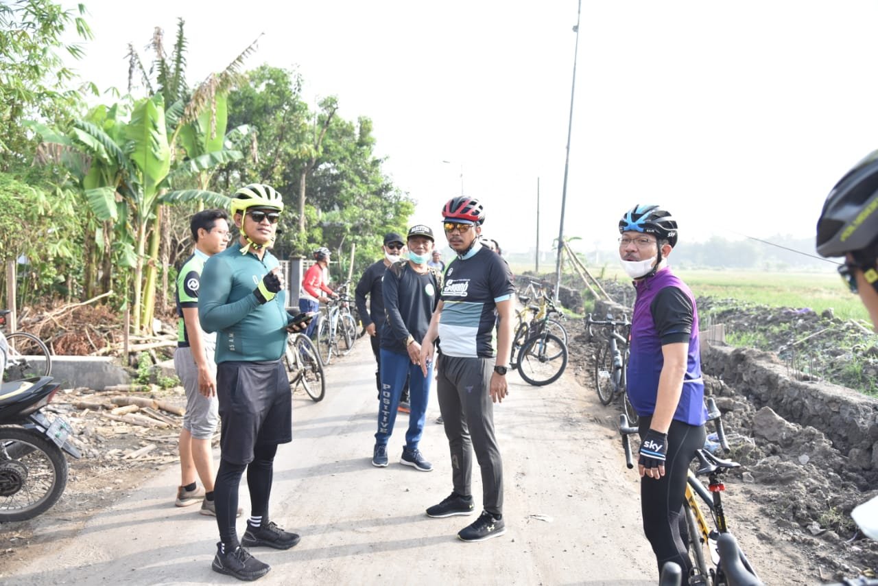 Naik sepeda ontel berangkat dari rumah Dinas Bupati di Jalan Cokronegoro, Gus Muhdlor menyisir sejumlah proyek yang dilewatinya disepanjang jalan. Salah satunya yakni proyek betonisasi Jalan Wonoayu – Candinegoro di Kecamatan Wonoayu.
