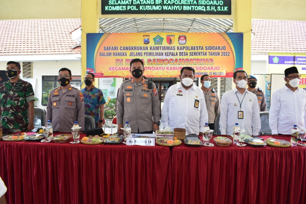 Cangkrukan kamtibmas digelar bergantian, sebagai forum mewujudkan kondusifitas kamtibmas Pilkades serentak 2022 di 84 desa Kabupaten Sidoarjo pada 19 Juni 2022. Selain itu, dihadapan Forkopimka, panitia penyelenggara, perangkat desa dan para calon kepala desa juga dipaparkan kesiapan pengamanan TNI-Polri dan netralitas dalam Pilkades serentak.