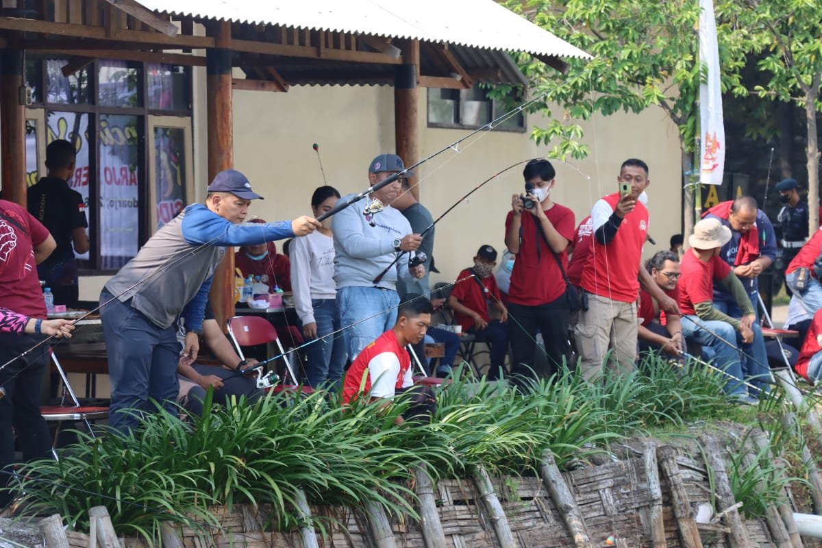 Ikut sert dalam kegiatan mancing mania, Kapolresta Sidoarjo Kombes Pol. Kusumo Wahyu Bintoro, Wakapolresta Sidoarjo AKBP Deny Agung Andriana, pejabat utama, Kapolsek jajaran dan puluhan wartawan Piramida Sidoarjo.