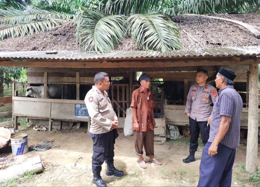 Aceh Timur – Guna mencegah wabah Penyakit Mulut dan Kuku (PMK) pada hewan ternak, Kapolsek Peureulak Barat Ipda Dede Moerdhany, S.H. turun langsung ke lapangan melakukan pendampingan serta pengawasan kepada warga Desa Alue Bu Jalan, Senin, (18/07/2022).