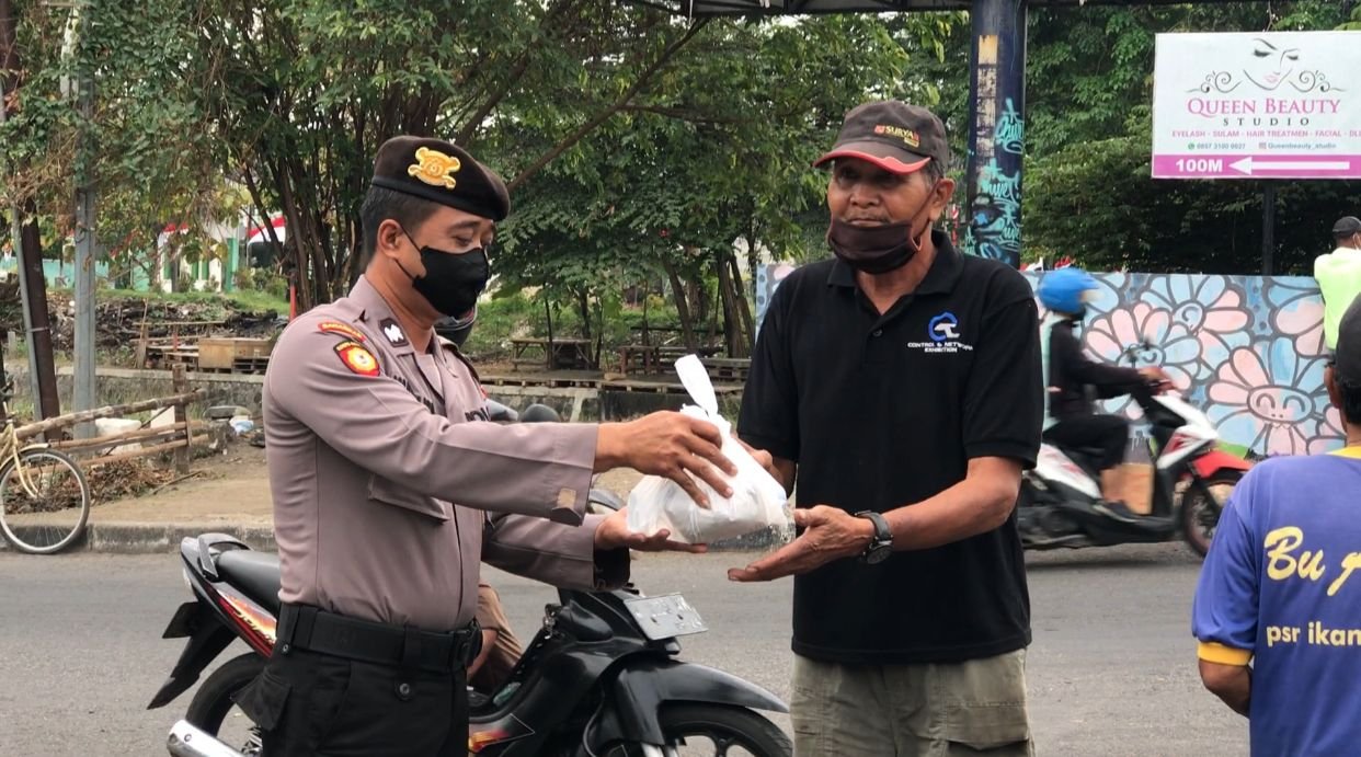 Hasil dari yang terkumpul dari anggota Sat Samapta Polresta Sidoarjo, kemudian dirupakan bahan makanan untuk diberikan ke orang duafa atau orang kurang mampu, yang ditemui anggota saat melakukan patroli kamtibmas di jalan raya.