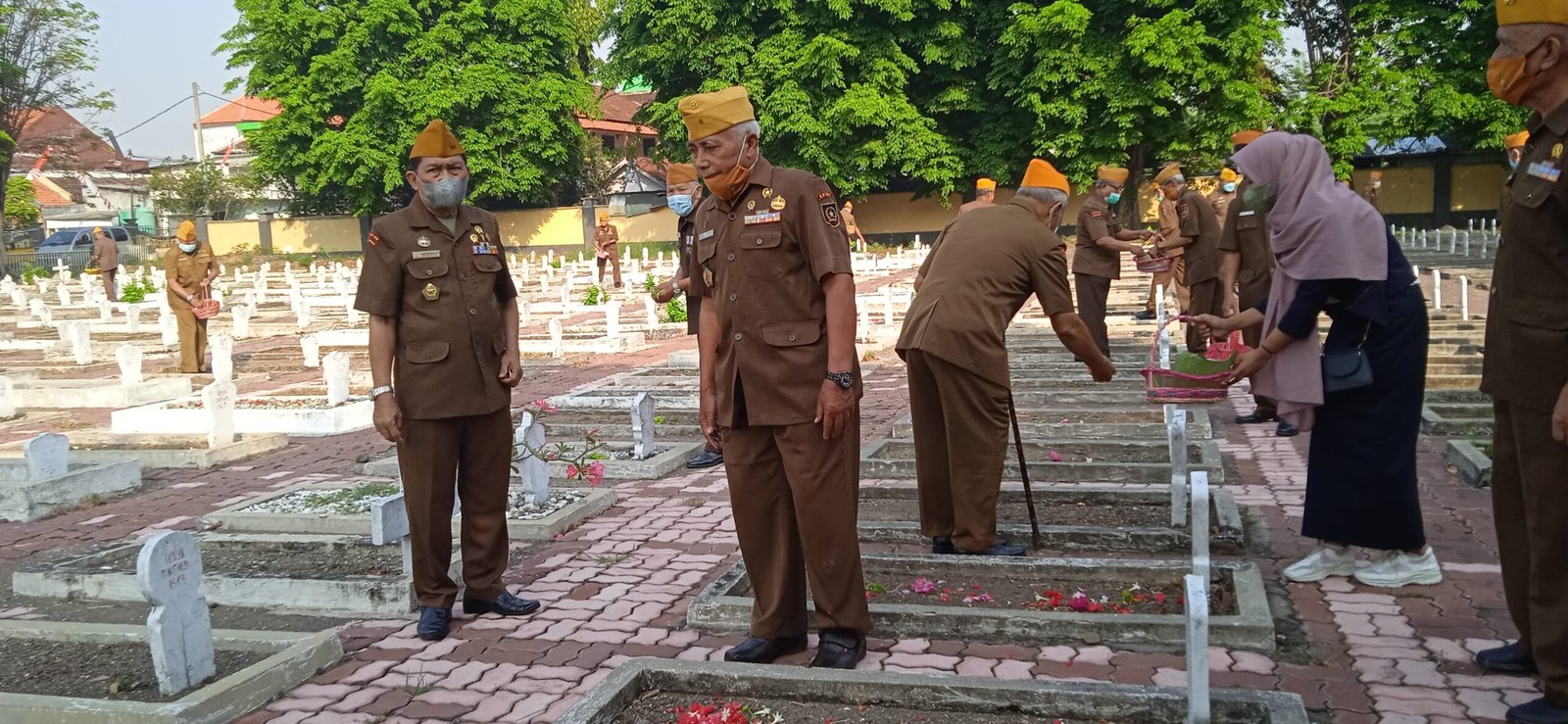 “Para Anggota Veteran Dewan Pimpinan Cabang Kabupaten Sidoarjo melakukan Ziarah rombongan disertai tabur bunga diikuti oleh anggota Veteran dari 18 kecamatan se Kabupaten Sidoarjo, Acara dilakukan dengan hikmat dan mematuhi protokol kesehatan.