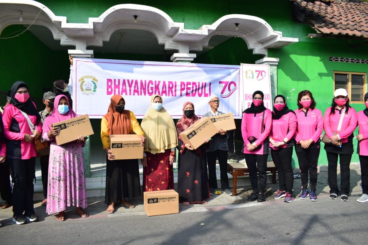 Kepedulian pada masyarakat terdampak kenaikan harga BBM, dilakukan Ketua Bhayangkari Cabang Kota Sidoarjo Ny. Maya Kusumo beserta pengurus dengan membagikan bantuan sosial berupa paket sembako bagi masyarakat.
