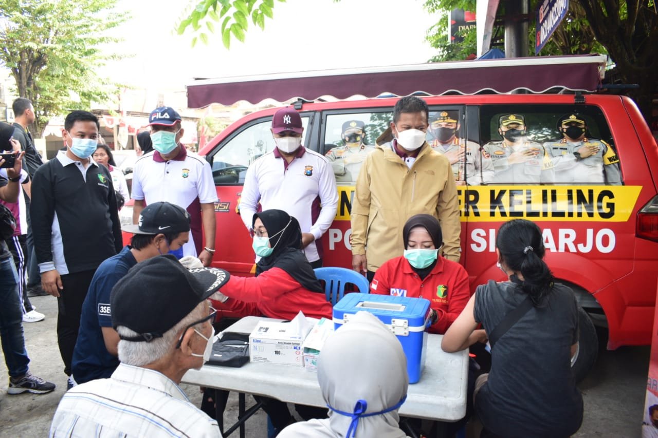 Adanya terobosan layanan publik keliling Polresta Sidoarjo ke wilayah pelosok jauh dari perkotaan, begitu dirasakan manfaatnya oleh warga. Di saat mereka sedang berbelanja, ada yang melaksanakan vaksinasi Covid-19 hingga pengurusan SKCK.