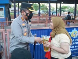 Masyarakat yang datang di gerai vaksinasi mobile di Terminal Purabaya untuk melakukan vaksin, juga diberi bingkisan berupa minyak goreng oleh Kapolresta Sidoarjo sebagai bentuk apresiasi.