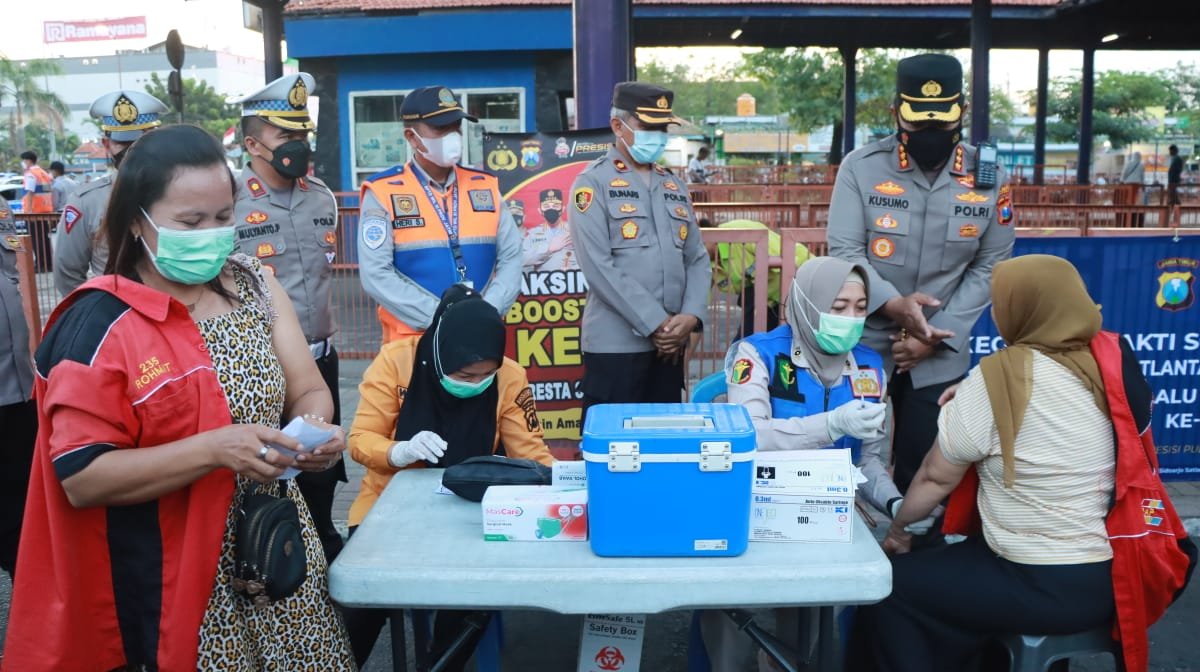 “Kali ini kami sediakan 200 dosis vaksin ketiga, yakni pfizer dan moderna. Sampai saat ini stok vaksin masih aman, silahkan masyarakat termasuk pengguna sarana transportasi umum baik yang akan pergi luar kota maupun dalam kota, bila belum mendapatkan vaksin booster dapat mendatangi gerai vaksin layanan kami,” kata Kapolresta Sidoarjo Kombes Pol. Kusumo Wahyu Bintoro.
