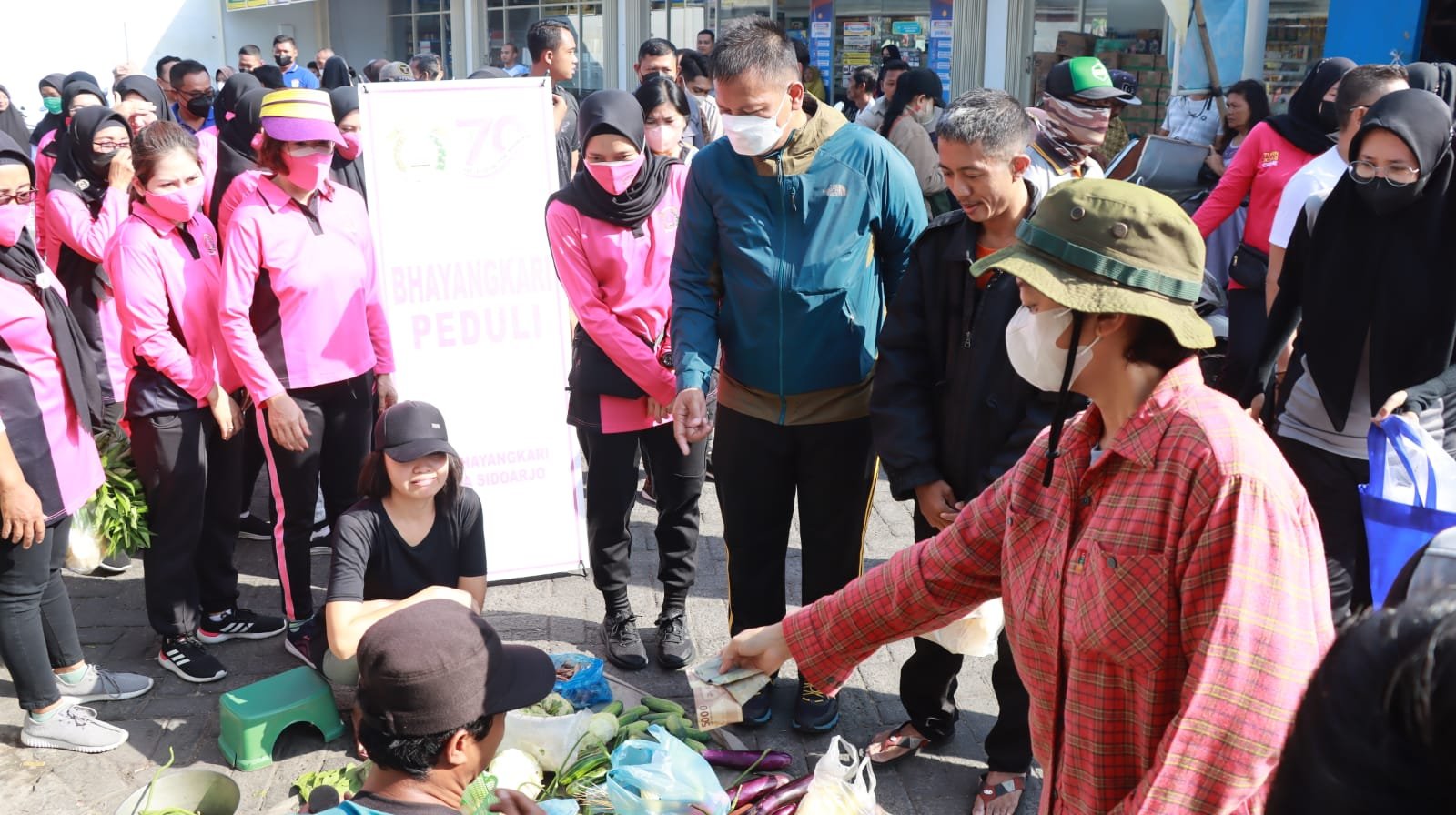 Dari Polsek Waru, rombongan Polresta Sidoarjo, polsek jajaran dan Bhayangkari berjalan menuju pasar kaget yang ada di Desa Kureksari, Waru. Di pasar ini, Kapolresta Sidoarjo mengajak pejabat utama, anggota dan pengurus Bhayangkari berbelanja.