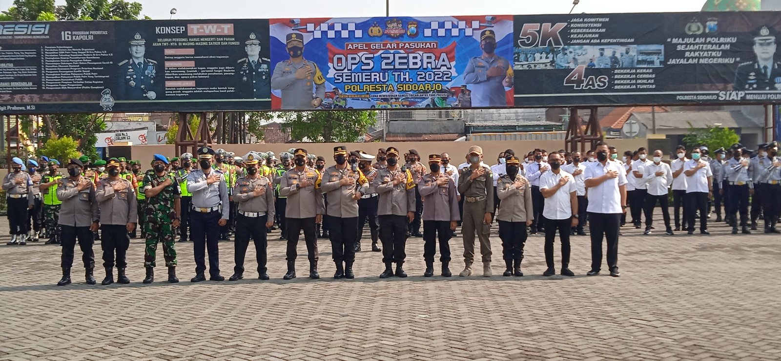Dimulainya Operasi Zebra Semeru 2022 di wilayah Kabupaten Sidoarjo, ditandai dengan apel gelar pasukan yang dipimpin Kapolresta Sidoarjo Kombes Pol. Kusumo Wahyu Bintoro, Senin (3/10/2022) pagi di Mapolresta Sidoarjo. Apel diikuti personel gabungan dari Polresta Sidoarjo, Polsek jajaran, TNI, Dishub dan Satpol PP.