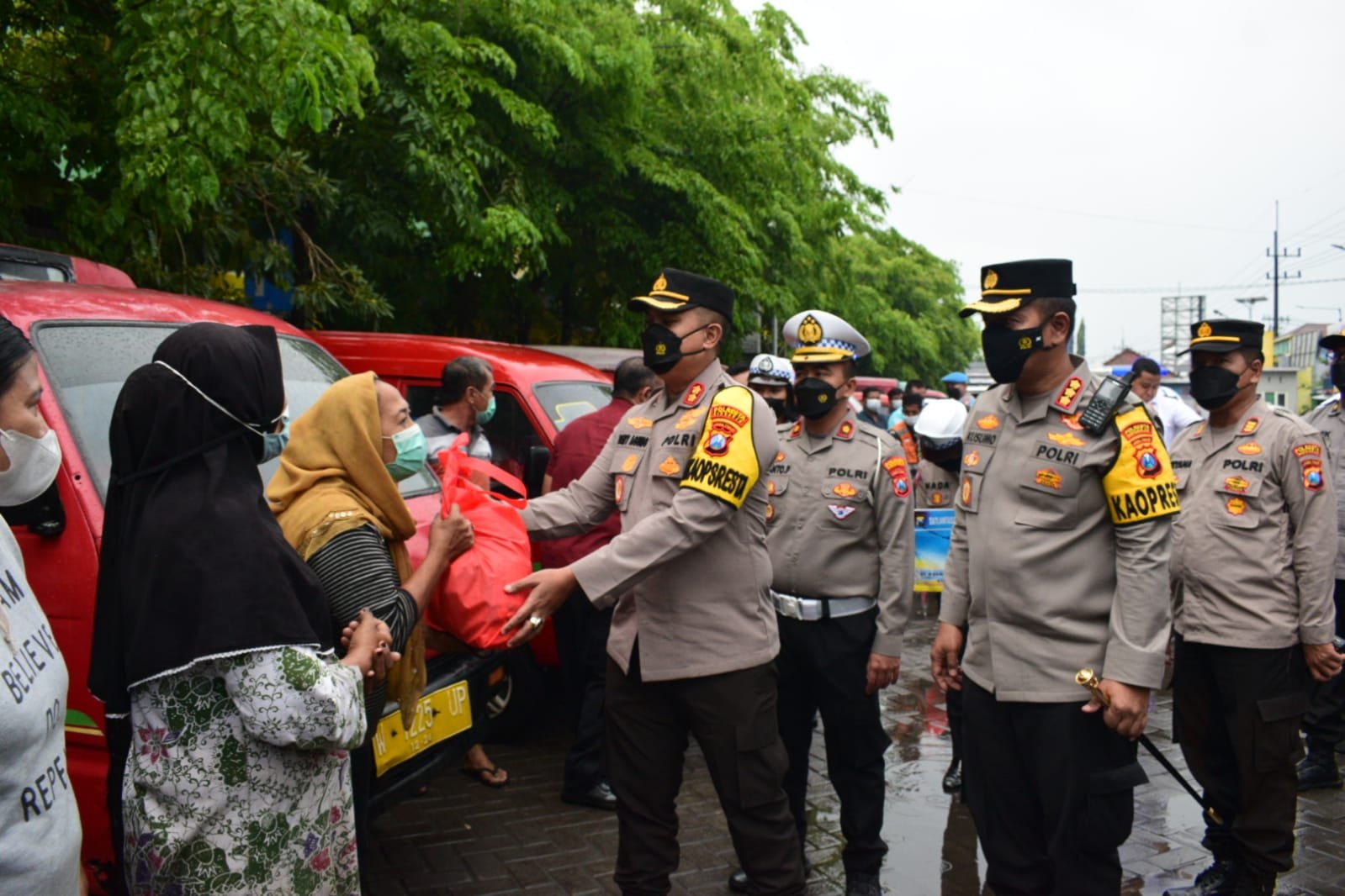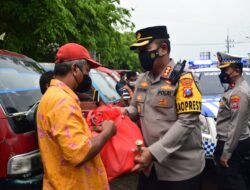 Sambil Edukasi Tertib Lalu Lintas, Polresta Sidoarjo Bagikan Bansos di Pasar Sukodono