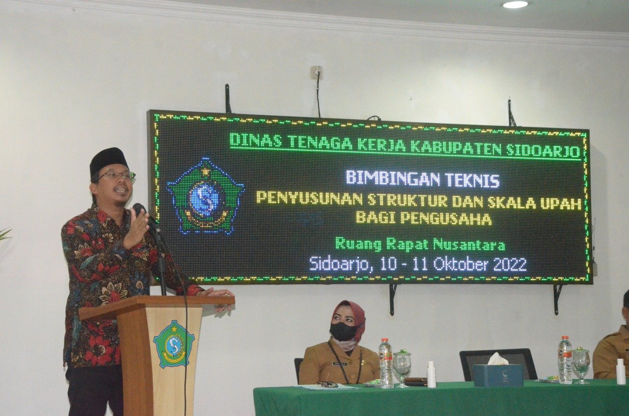 SIDOARJO,majalahglobal.com – Pemkab Sidoarjo tengah persiapkan pembahasan usulan pengupahan tahun 2023. Langkah awal Pemkab Sidoarjo memfasilitasi perusahaan dengan Bimbingan Teknis/Bimtek Penyusunan Struktur dan Skala Upah bagi Pengusaha yang digelar hari ini Senin, (10/10/2022) di kantor Dinas Tenaga Kerja/Disnaker Sidoarjo. Kegiatan yang dibuka Bupati Sidoarjo Gus Muhdlor tersebut diikuti 50 orang HRD dari perusahaan besar.