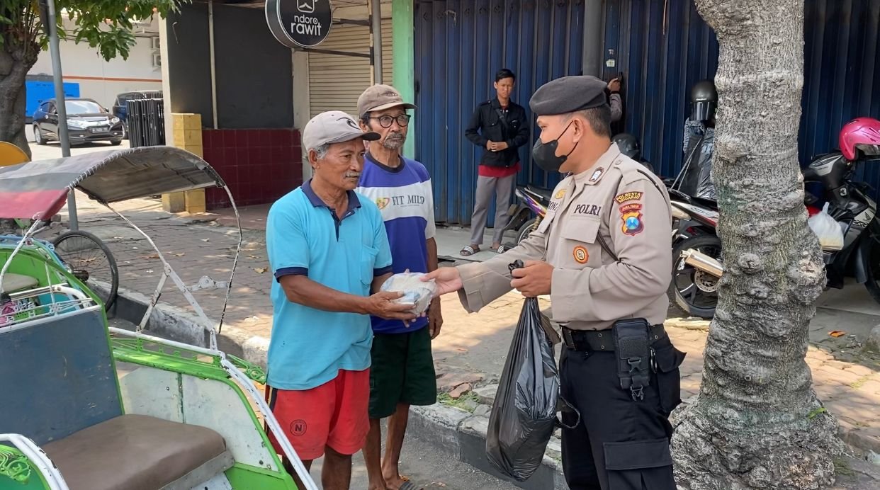 SIDOARJO,majalahglobal.com – “Sekali dayung, dua pulau terlampaui” itu mungkin menjadi peribahasa yang tepat untuk kegiatan rutin unit patrol Sat Samapta Polresta Sidoarjo ini. Bagaimana tidak, di hari Jumat (14/10/2022) anggota Samapta Polresta Sidoarjo membagikan makanan kepada masyarakat yang membutuhkan sembari melakukan patroli di daerah hukum Polresta SIdoarjo. Kegiatan patroli sambil sedekah tersebut sudah menjadi rutinitas yang dilaksanakan setiap hari Rabu dan Jumat.