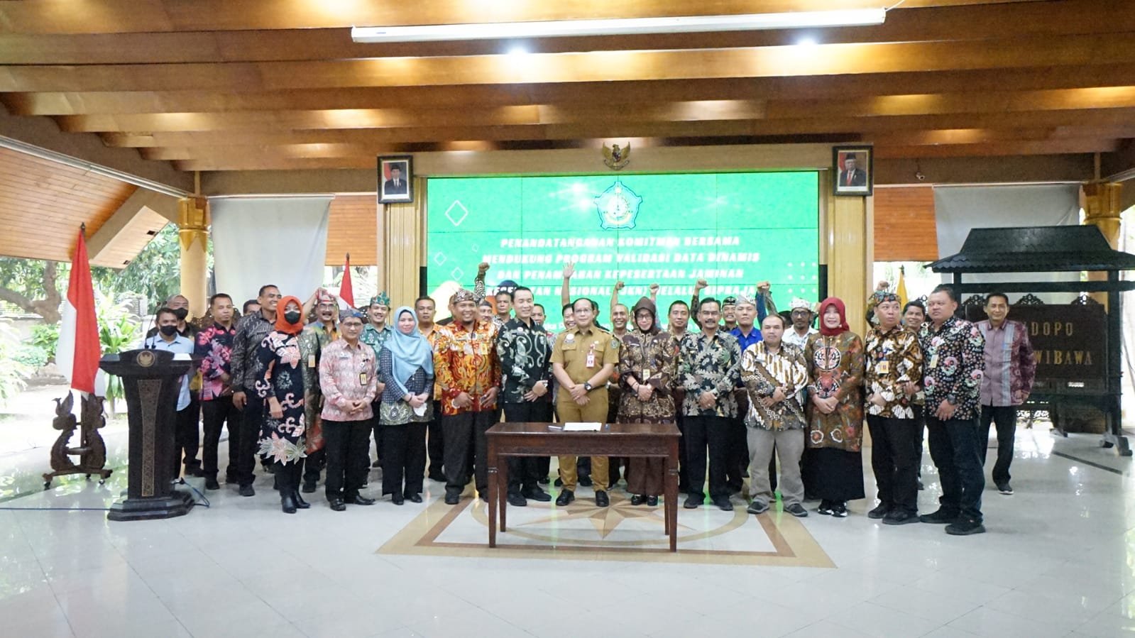 Penandatanganan dilakukan antara kepala Badan Pelayanan Pajak Daerah dengan kepala Dinas Penanaman Modal dan Pelayanan Terpadu Satu Pintu serta kepala Dinas Kependudukan dan Pencatatan Sipil dan seluruh camat.