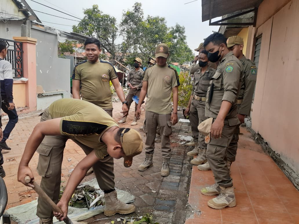 SIDOARJO,majalahglobal.com – Anggota SatPol PP Sidoarjo melakukan kerja bakti untuk membersihkan puing-puing reruntuhan bangunan akibat diterjang angin puting beliung yang terjadi pada Minggu sore (23/10/2022) di Dusun Mlaten, Desa Sidokepung, Kecamatan Buduran – Sidoarjo. Senin (24/10/2022).